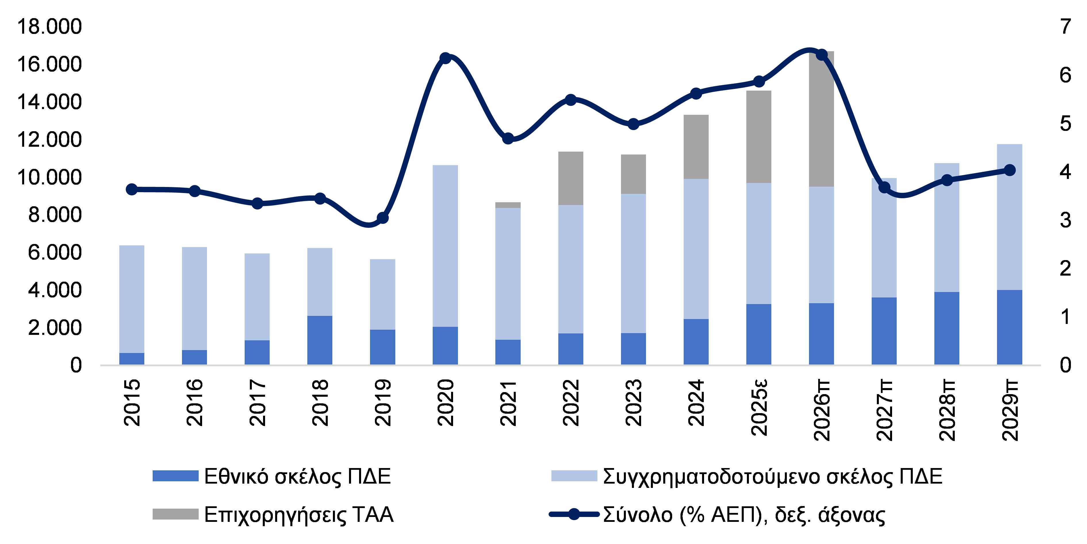 [v] 2027: 9,95 δισ. ευρώ, 2028: 10,75 δισ. ευρώ, 2029: 11,75 δισ. ευρώ.