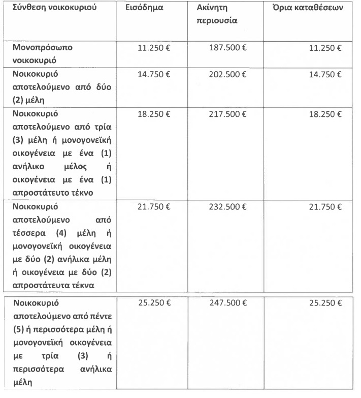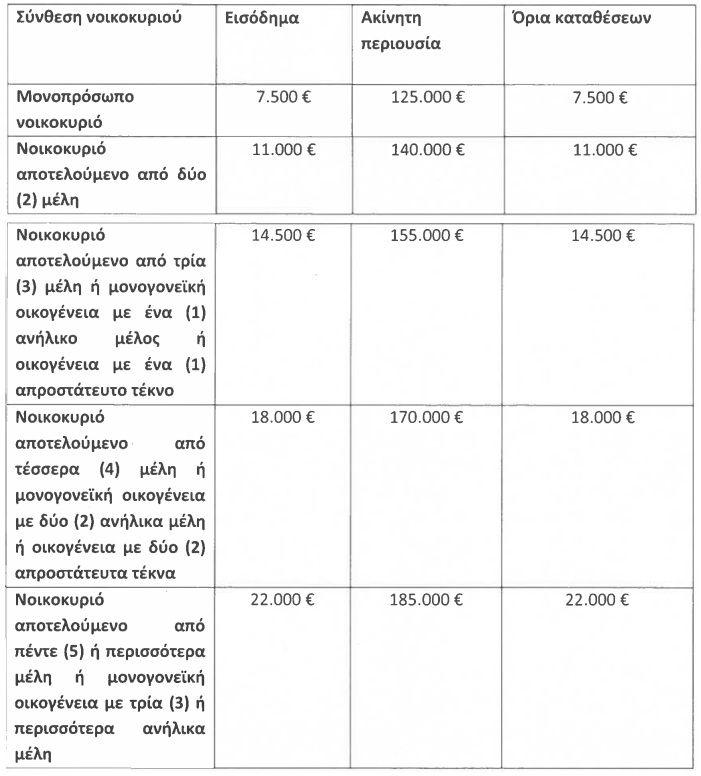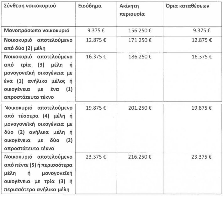 3. Για δανειολήπτες που πληρούν τα εξής περιουσιακά και εισοδηματικά όρια, καθώς και όρια καταθέσεων της παρούσας (Κατηγορία 1):
