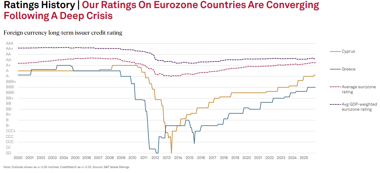Η τελευταία ανάλυση της S&P Global Ratings για την Ελλάδα και την Κύπρο σκιαγραφεί μια εικόνα ουσιαστικής βελτίωσης σε σχέση με το παρελθόν, αλλά και σαφών ορίων ως προς το πόσο γρήγορα μπορούν να κινηθούν οι δύο χώρες σε υψηλότερες βαθμίδες αξιολόγησης.