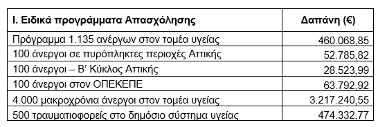 Παρακάτω παρουσιάζονται αναλυτικά οι συνολικές δαπάνες και ο αριθμός ωφελούμενων, ανά κατηγορία παροχών καθώς και οι δαπάνες για τα ειδικά προγράμματα απασχόλησης οργανωμένες σε εννέα βασικές κατηγορίες.