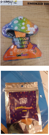 Καλούνται οι καταναλωτές που έχουν προμηθευτεί παρόμοια προϊόντα (ενδεικτικές φωτογραφίες κάτωθι), τα οποία αναφέρουν στην επισήμανσή τους την παρουσία μουσκιμόλης ή Amanita muscaria ή διατίθενται με ονομασίες όπως «Amanita Gummies», «Mushroom Muscimol Gummies» “Magic Maushroom” κ.λπ., να μην τα καταναλώσουν.