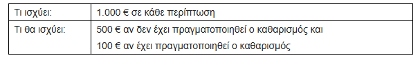 - Θέσπιση και ανώτατου ορίου προστίμου 2.000 € (10πλάσιου του ελαχίστου των 200€) για τη μη εκπλήρωση της υποχρέωσης του καθαρισμού.