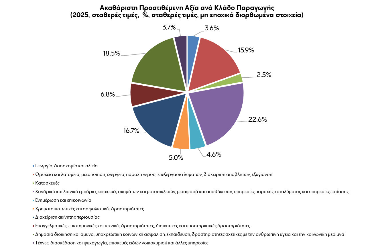 Ακαθάριστη Προστιθέμενη Αξία: Κλαδικές συνεισφορές και παράγοντες διαμόρφωσης της ανάπτυξης για το δ’ τρίμηνο του 2025