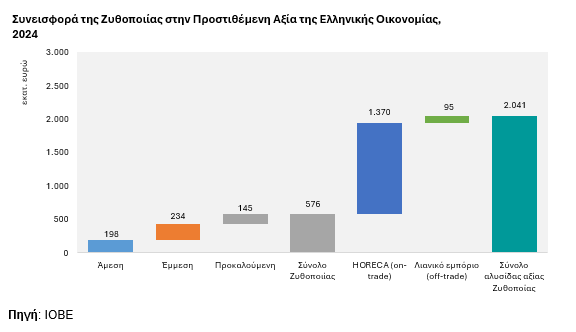 Όπως προκύπτει από τη μελέτη του ΙΟΒΕ η προστιθέμενη αξία που δημιουργήθηκε άμεσα και έμμεσα από τη Ζυθοποιία στην ελληνική οικονομία το 2024 ανέρχεται σε 576 εκατ. ευρώ.
