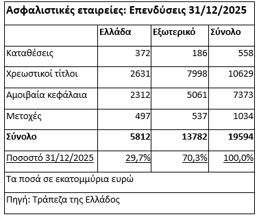 Ένα δεύτερο συμπέρασμα που προκύπτει είναι το πολύ χαμηλό ρίσκο που αναλαμβάνουν οι ασφαλιστικές εταιρείες σχετικά με το χαρτοφυλάκιό τους. Ειδικότερα, από τα 21,2 δισ. ευρώ της 30ης Σεπτεμβρίου 2025: