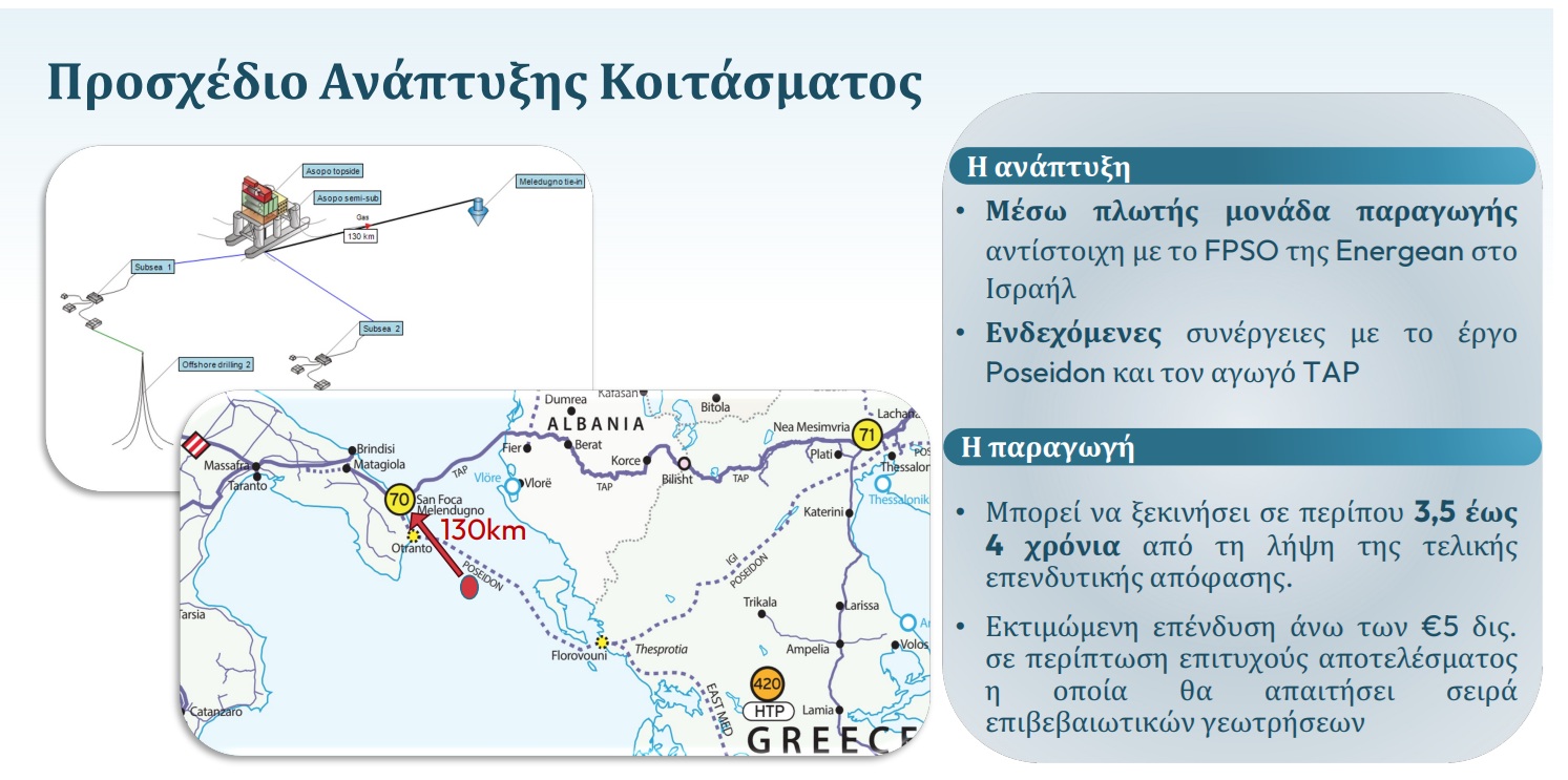Αν και μια τέτοια συζήτηση είναι ακόμη πολύ πρόωρη, καθώς προέχει η έρευνα στο «μπλοκ 2», εντούτοις στο σενάριο που υπάρξει ανακάλυψη στην ελληνική πλευρά και συμβεί κάτι αντίστοιχο και στην ιταλική, η διεθνής πρακτική προβλέπει τη συνεκμετάλλευση.