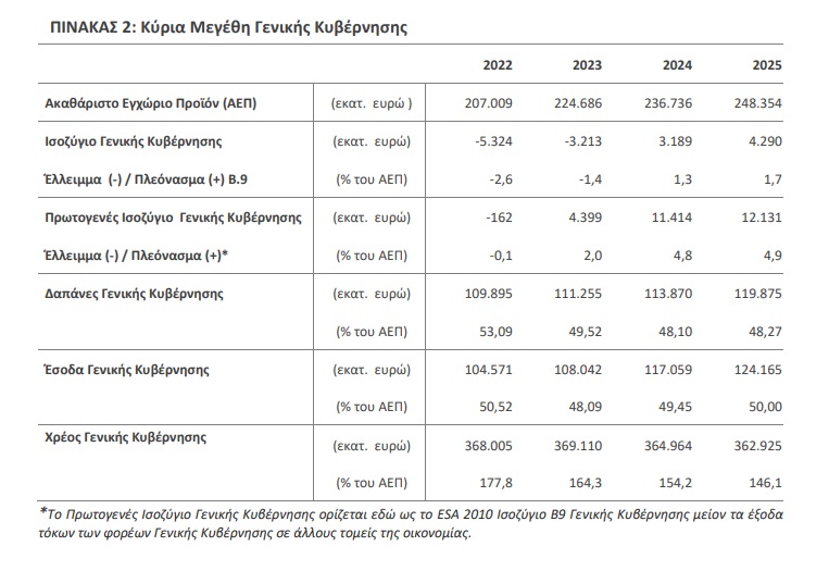 Ταυτόχρονα η στατιστική αρχή κάνει γνωστό ότι το αποτέλεσμα της Γενικής Κυβέρνησης για το έτος 2025, σύμφωνα με το ESA 2010, εκτιμάται στα 4,29 δισ. ευρώ (πλεόνασμα), ενώ το ακαθάριστο ενοποιημένο χρέος της Γενικής Κυβέρνησης σε ονομαστικές τιμές στο τέλος του 2025 εκτιμάται στα 362,9 δισ. ευρώ (146,1% επί του Ακαθάριστου Εγχώριου Προϊόντος).