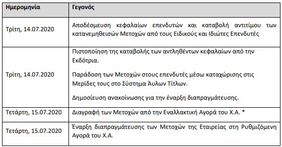 Το αναμενόμενο χρονοδιάγραμμα της διαδικασίας εισαγωγής των μετοχών της Εταιρείας στη Ρυθμιζόμενη Αγορά του Χρηματιστηρίου Αθηνών έχει ως εξής: