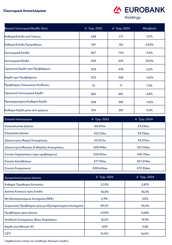Θετικές ήταν οι επιδόσεις της Eurobank το Α΄Τρίμηνο 2025. Πιο αναλυτικά: