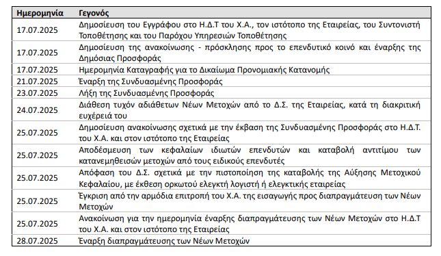 Δικαιούχοι του Δικαιώματος Προνομιακής Κατανομής είναι όλοι οι μέτοχοι της εταιρείας, οι οποίοι εμφανίζονται ως μέτοχοι στο Σ.Α.Τ., κατά την 17.07.2025.