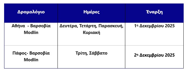 Από την 1η Δεκεμβρίου 2025 οι επιβάτες θα μπορούν να ταξιδεύουν απευθείας από την Αθήνα στην καρδιά της ευρύτερης περιοχής της πρωτεύουσας της Πολωνίας. Τα εισιτήρια είναι ήδη διαθέσιμα για κράτηση στο wizzair.com και μέσω της εφαρμογής WIZZ.