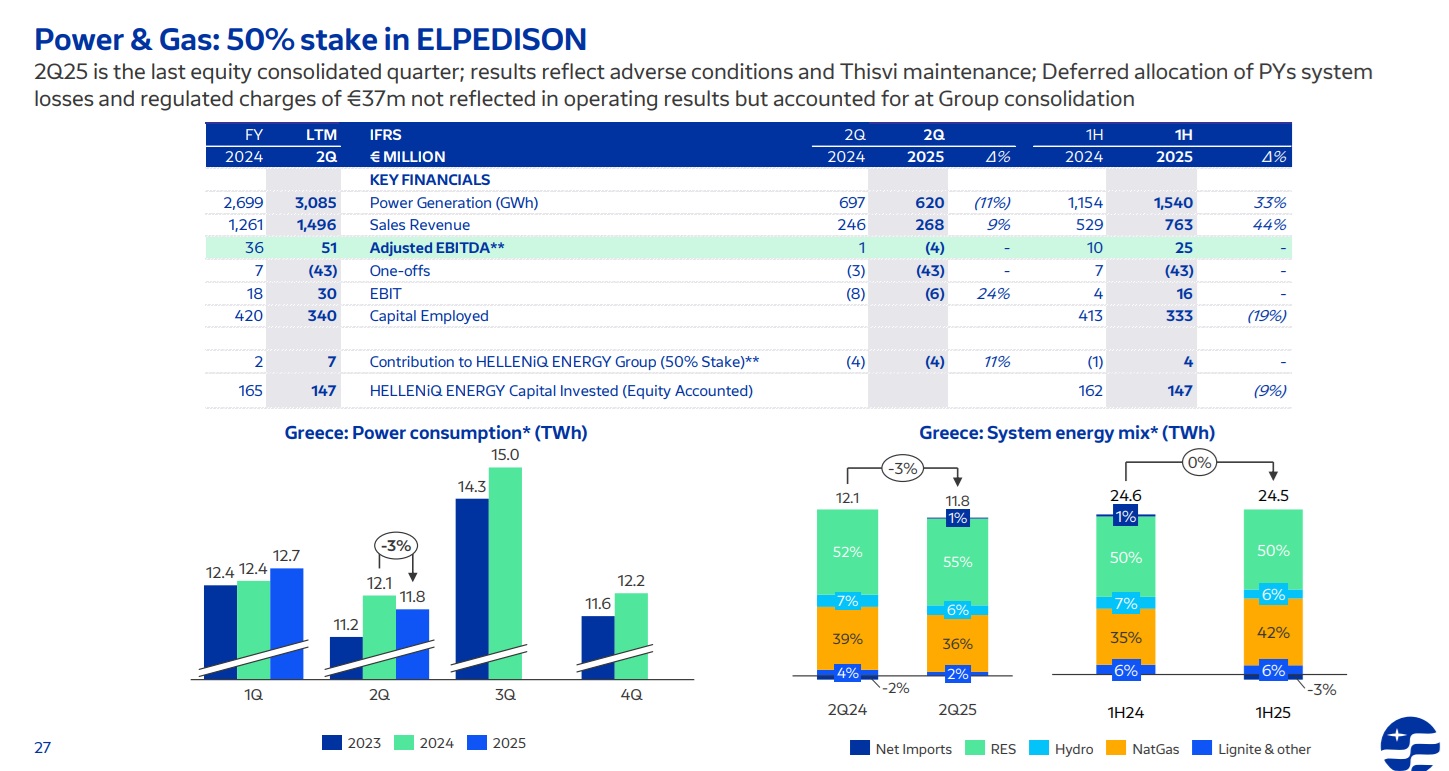 Η ενεργοποίηση της Elpedison ως αυτόνομου πυλώνα στο κλάδο του ηλεκτρισμού και του φυσικού αερίου μαζί με τις νέες εξαγορές ΑΠΕ, έρχονται να προστεθούν σε μια σειρά άλλων θετικών ειδήσεων που προκύπτουν από τη χθεσινή παρουσίαση των αποτελεσμάτων στους αναλυτές: Τις στρατηγικές κινήσεις στην εμπορία καυσίμων αλλά κυρίως την επαναφορά του διυλιστηρίου της Ελευσίνας σε πλήρη δυναμικότητα μετά την ολοκλήρωση των εργασιών γενικής συντήρησης, γεγονός που συνεπάγεται αναβάθμιση της λειτουργίας του.