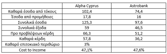 Τέλος, η Αlpha Bank Cyprus διέθετε στις 31/12/2024 μη εξυπηρετούμενα δάνεια μόλις 19,2 εκατ. ευρώ (NPE ratio 1,7%) με συντελεστή κάλυψης 15%. Η Astrobank είχε NPE ratio 10,6% στις 31/12/2024 με συντελεστή κάλυψης 43,3% (Net NPEs 49,3 εκατ. ευρώ).