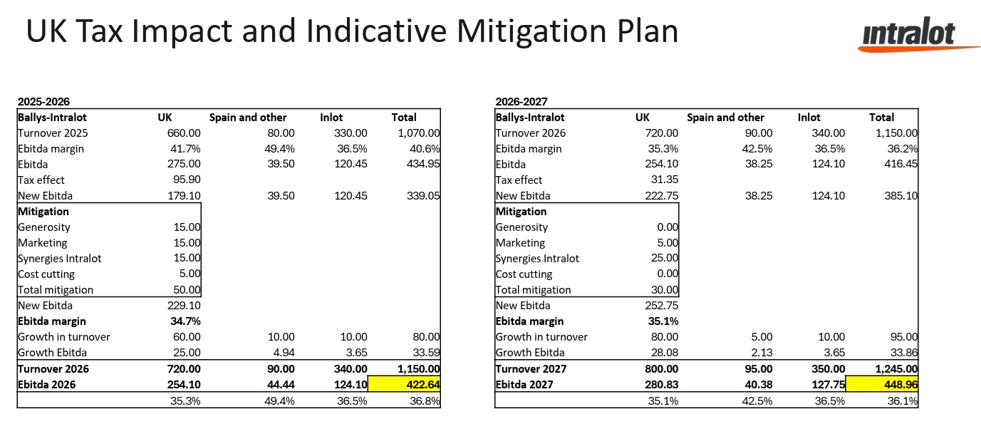 Σύμφωνα με τον CEO της INTRALOT τέτοιου είδους αυξήσεις στην φορολογία συμβαίνουν κατά καιρούς στην αγορά και ιστορικά έχουν φέρει στην επιφάνεια ευπάθειες, οδηγώντας σε συγκέντρωση της αγοράς και αύξηση του μεριδίου για εταιρείες όπως η Ballys, οι οποίες έχουν υψηλότερα περιθώρια κέρδους από άλλες ομοειδείς εταιρείες. Ο ίδιος εκτίμησε ότι οι εξελίξεις στο Ηνωμένο Βασίλειο θα έχουν ως αποτέλεσμα να υπάρξουν λιγότεροι παίκτες στην αγορά και κατά συνέπεια λιγότερος ανταγωνισμός.