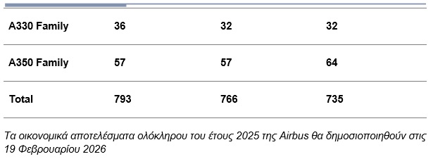 Η Airbus παρέδωσε το 2025 συνολικά 793 εμπορικά αεροσκάφη σε 91 πελάτες παγκοσμίως και κατέγραψε 1.000 νέες ακαθάριστες παραγγελίες στον τομέα των Εμπορικών Αεροσκαφών.