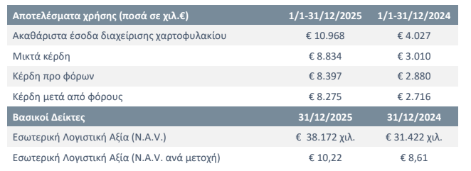 Τα κέρδη μετά φόρων έφθασαν τα 8,27 εκατ. ευρώ από τα 2,72 εκατ. ευρώ το 2024, παρουσιάζοντας αύξηση της τάξης του 205%.