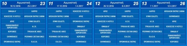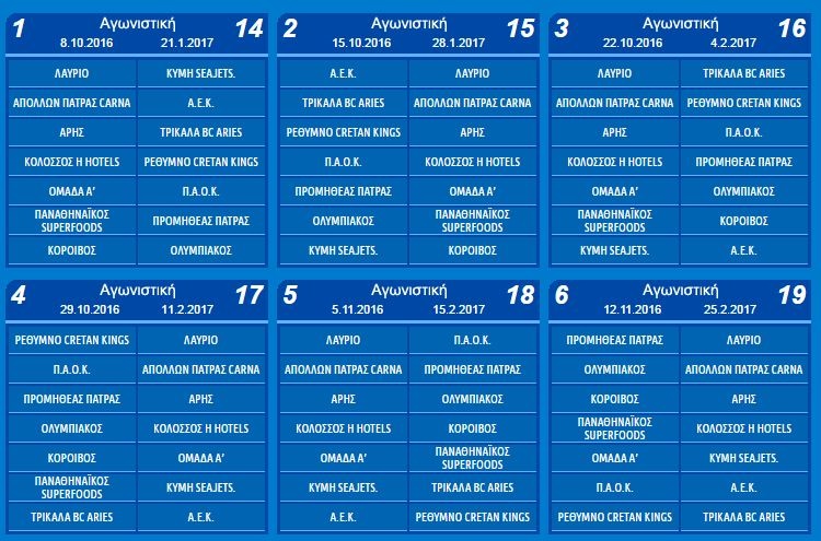 Η κλήρωση της BasketLeague για τη σεζόν 2016/17 ολοκληρώθηκε και μας έδωσε από νωρίς συγκινήσεις, με ντέρμπι «αιωνίων», Ολυμιακός - Παναθηναϊκός στο ΣΕΦ, τη δεύτερη αγωνιστική. Ντέρμπι και στην Θεσσαλονίκη την 3η αγωνιστική με τον Αρη να αντιμετωπίζει τον ΠΑΟΚ.