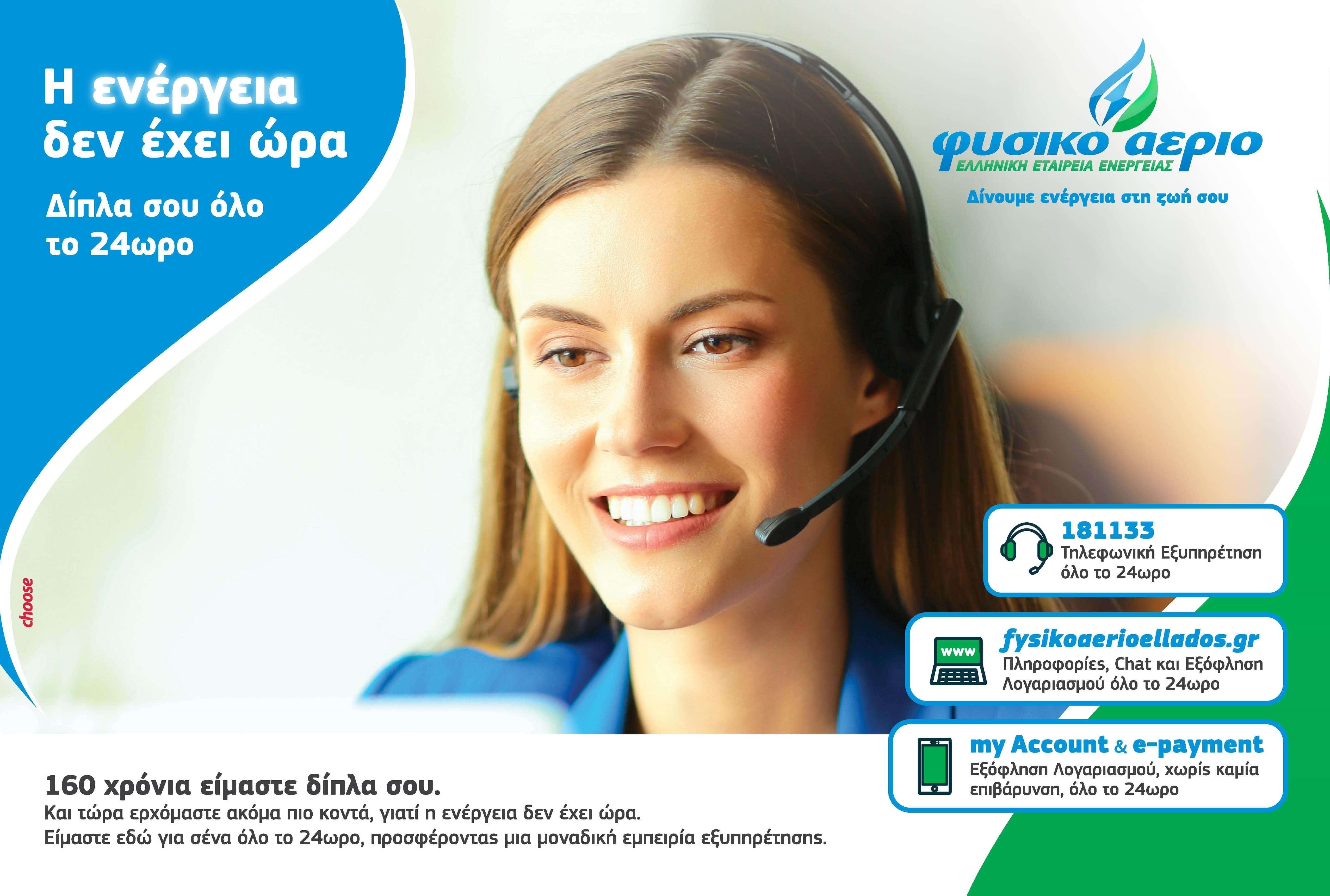 Η Τηλεφωνική Γραμμή Εξυπηρέτησης, 181133, μέσα από την οποία μπορούν όλοι να εξυπηρετούνται, 24 ώρες το 24ωρο, επτά ημέρες την εβδομάδα, από το εξειδικευμένο προσωπικό της εταιρείας.