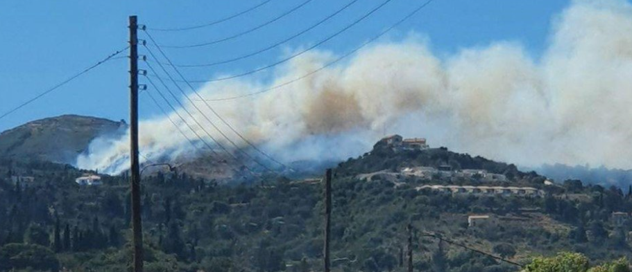 Δεύτερη μεγάλη πυρκαγιά μέσα σε ένα 24ωρο ξέσπασε στη Ζάκυνθο. Αυτήν τη φορά σε δασική έκταση στη θέση Ασκός, στο χωριό Βολίμες.