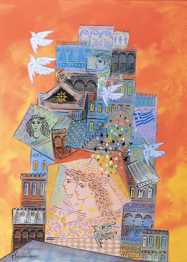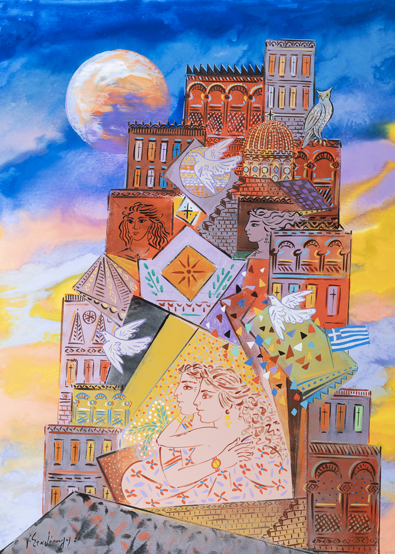 Ο ζωγράφος αναζητεί και ανακαλύπτει σχέσεις χρωμάτων και σχεδίων, οι οποίες προκύπτουν μέσα από υπερρεαλιστικά και εξπρεσιονιστικά στοιχεία δομημένα μέσα σε μία απλοϊκή γραφή, που μας παρασύρει στην απεραντοσύνη του ονείρου της πολύχρωμης πόλης, των καιρών, των ανθρωπίνων σωμάτων.
