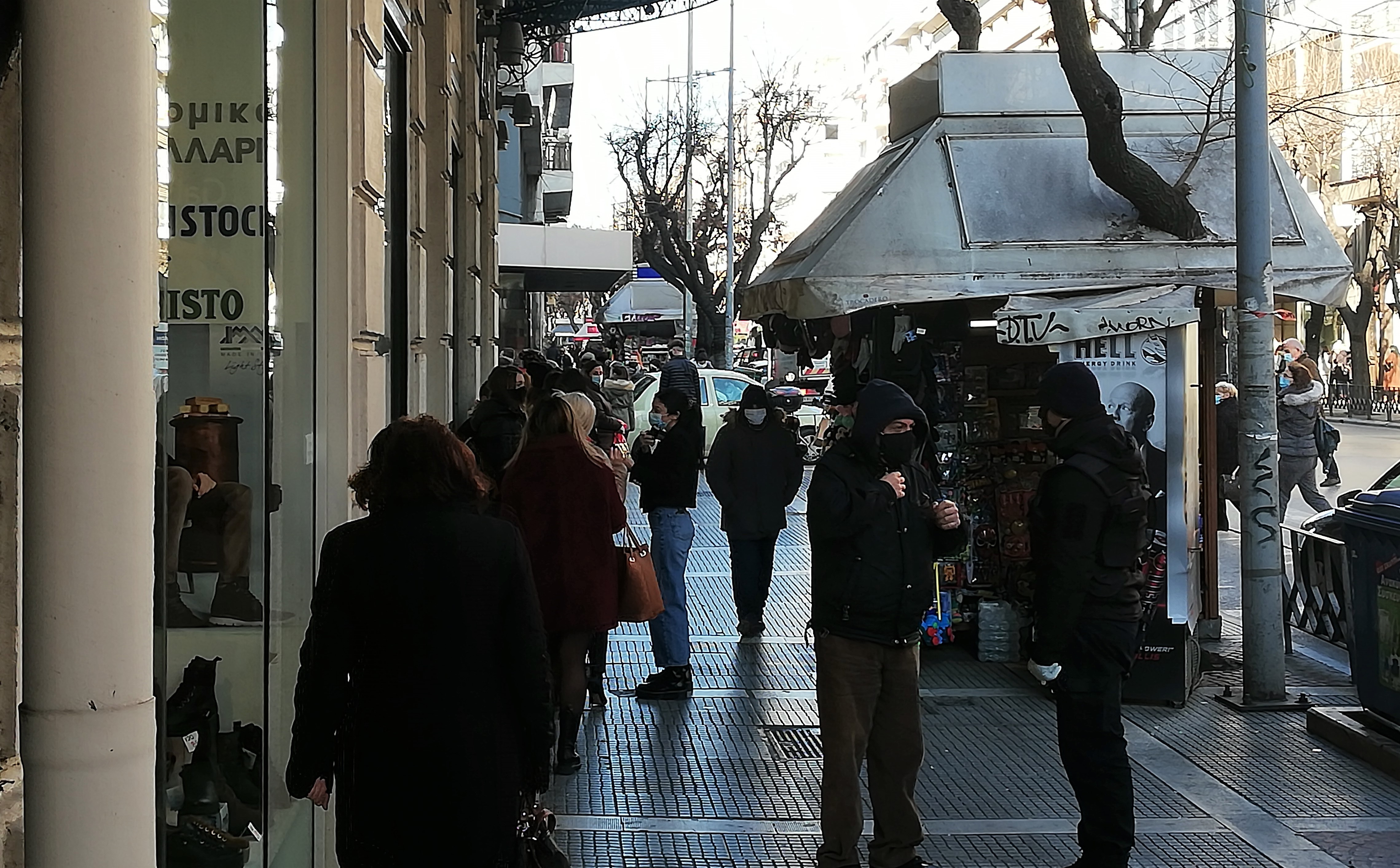 Αν κάποιος αυτές τις μέρες θελήσει να αγοράσει ένα ζευγάρι παπούτσια από ένα δημοφιλές πολυκατάστημα στο κέντρο της Θεσσαλονίκης, ίσως χρειαστεί να περιμένει υπομονετικά στην ουρά έξω από αυτό επί μισή ώρα ή και περισσότερο. Να διατηρεί απόσταση 2 μέτρων από τους υπόλοιπους, μέχρι να έρθει η σειρά του να εισέλθει, με τον περιορισμό της παρουσίας 1 ατόμου ανά 25 τ.μ. στο εσωτερικό του καταστήματος.