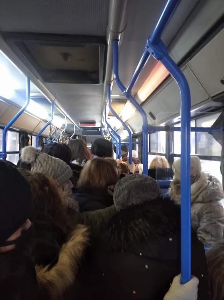 Κατά τη μετάβασή του, όμως, στο κέντρο της πόλης και κατά την επιστροφή του στο σπίτι, μπορεί να βρεθεί για άλλη τόση ώρα στριμωγμένος ανάμεσα σε δεκάδες άλλους συμπολίτες του και σε άμεση σωματική επαφή με κάποιους εξ αυτών, μέσα στο μοναδικό μέσο μαζικής μεταφοράς της πόλης, το λεωφορείο του ΟΑΣΘ. Εδώ, σύμφωνα με την ΚΥΑ, που προβλέπει ανώτατη πληρότητα 65%, μπορούν να βρίσκονται νόμιμα δύο άτομα ανά 1 τ.μ. (!), ενώ είναι αμφίβολο αν κι αυτός ο περιορισμός τηρείται.