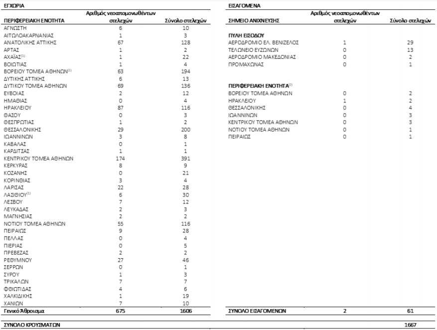 Συνολικά έχουν ταυτοποιηθεί 1.667 θετικά για την παρουσία μετάλλαξης Β.1.1.7/UK lineage (Variant VOC_202012) και 48 θετικά για την παρουσία μετάλλαξης B.1.351/South Africa (Variant 501V2) από την έναρξη λειτουργίας του Εθνικού Δικτύου Γονιδιωματικής Επιτήρησης για τις μεταλλάξεις του SARS- CoV-2 έως σήμερα.