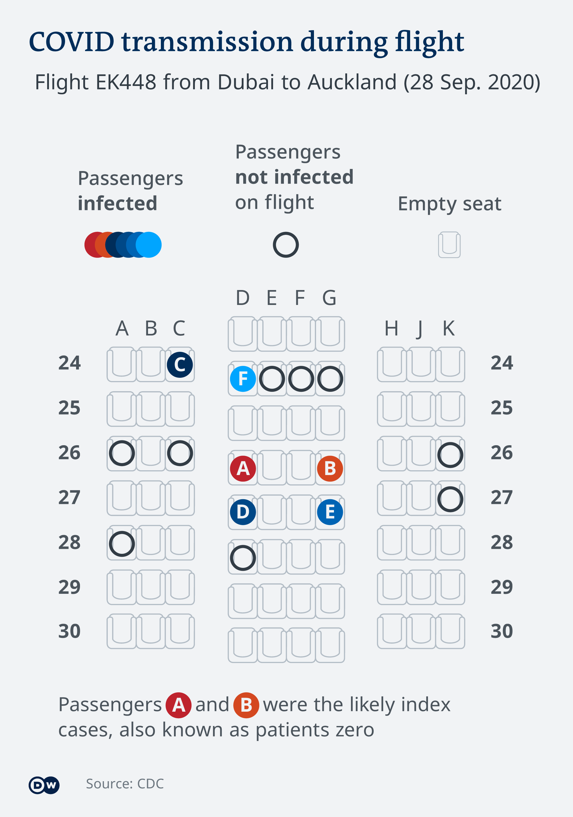 Έρευνα του αμερικανικού Κέντρου Ελέγχου και Πρόληψης Νοσημάτων CDC δείχνει πόσο σημαντική είναι όχι μόνο η χρήση προστατευτικής μάσκας, αλλά και του συστήματος εξαερισμού. Ειδικοί εξέτασαν στα πλαίσια έρευνας πολύωρη πτήση από το Ντουμπάι στο Όκλαντ, στην οποία τέσσερις επιβάτες μολύνθηκαν από ιό με τον οποίο είχαν προσβληθεί ένας ή δύο άλλοι επιβάτες πριν επιβιβαστούν στο αεροσκάφος. Ας σημειωθεί ότι δύο από τους τέσσερεις επιβάτες δεν φορούσαν μάσκα κατά τη διάρκεια της πτήσης. Επιπλέον το σύστημα εξαερισμού του αεροσκάφους τέθηκε για μισή ώρα εκτός λειτουργίας σε ενδιάμεσο σταθμό στη Μαλαισία, γεγονός που ενδέχεται να ευνόησε τη μετάδοση του ιού