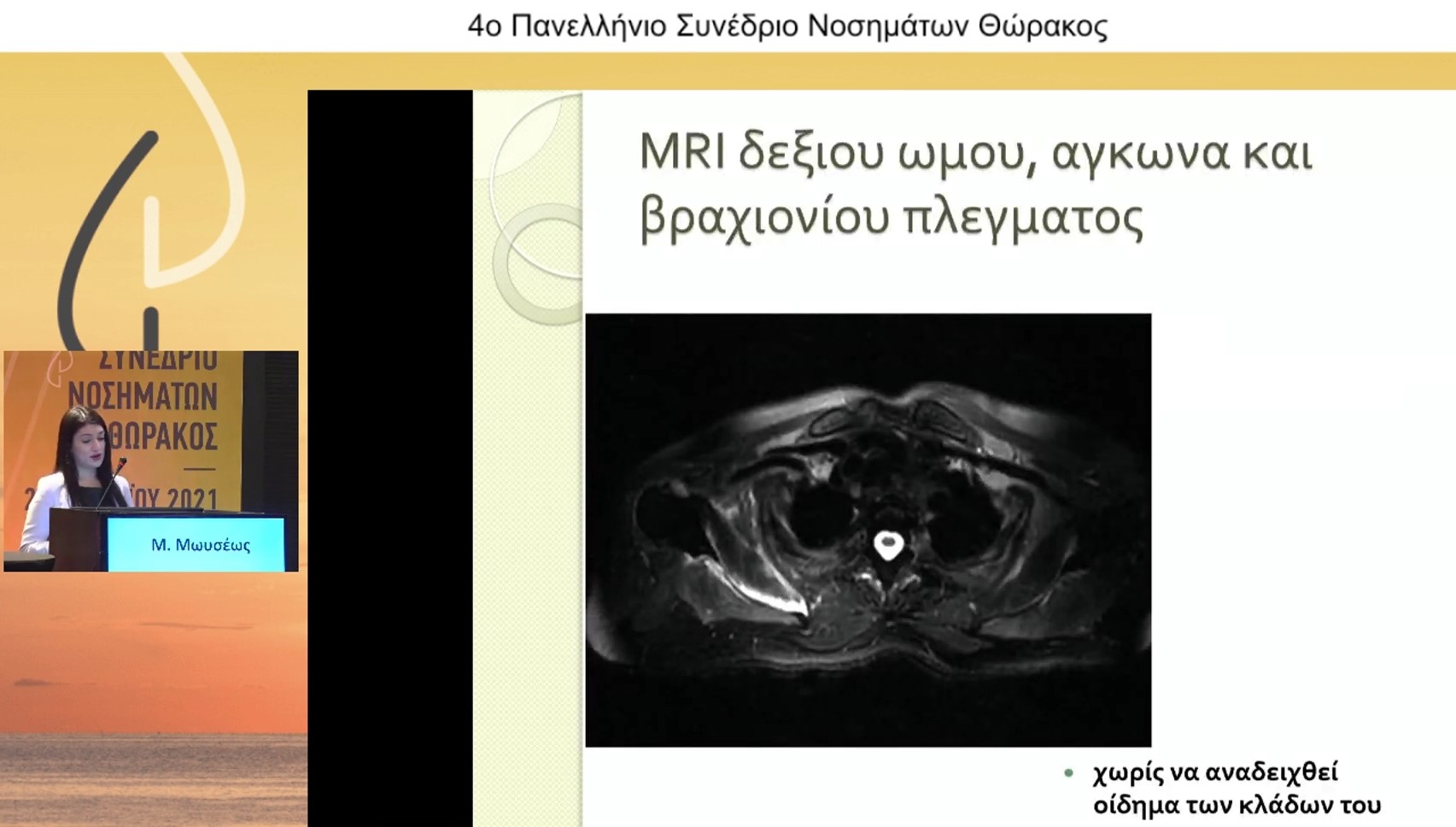 Όπως ανέφερε στη διάρκεια της παρουσίασης η ειδικευόμενη Πνευμονολόγος Μ. Μωυσέως, σχεδόν πάντα εκδηλώνεται με υποξύ ή οξύ πόνο στον ώμο ή μυική αδυναμία, συνοδευόμενη από εντοπισμένη μυική ατροφία.