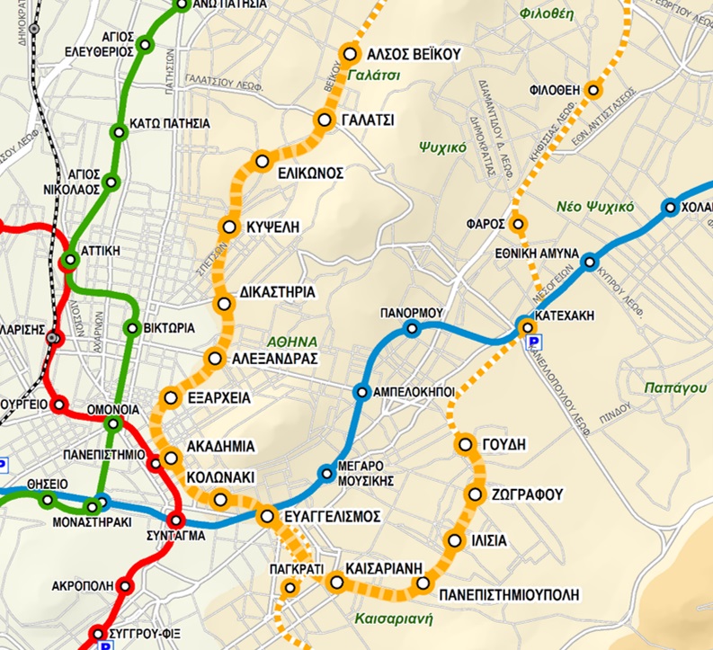 Σε 8 χρόνια, σύμφωνα με το χρονοδιάγραμμα του έργου, θα κατασκευαστούν σε μια γραμμή μήκους 12,8 χιλιομέτρων, η οποία θα εκτείνεται σε 4 δήμους, 15 νέοι υπόγειοι σταθμοί σε Άλσος Βεΐκου, Γαλάτσι, Ελικώνος, Κυψέλη, Δικαστήρια, Αλεξάνδρας, Εξάρχεια, Ακαδημία, Κολωνάκι, Ευαγγελισμός, Καισαριανή, Πανεπιστημιούπολη, Ιλίσια, Ζωγράφου και Γουδή.