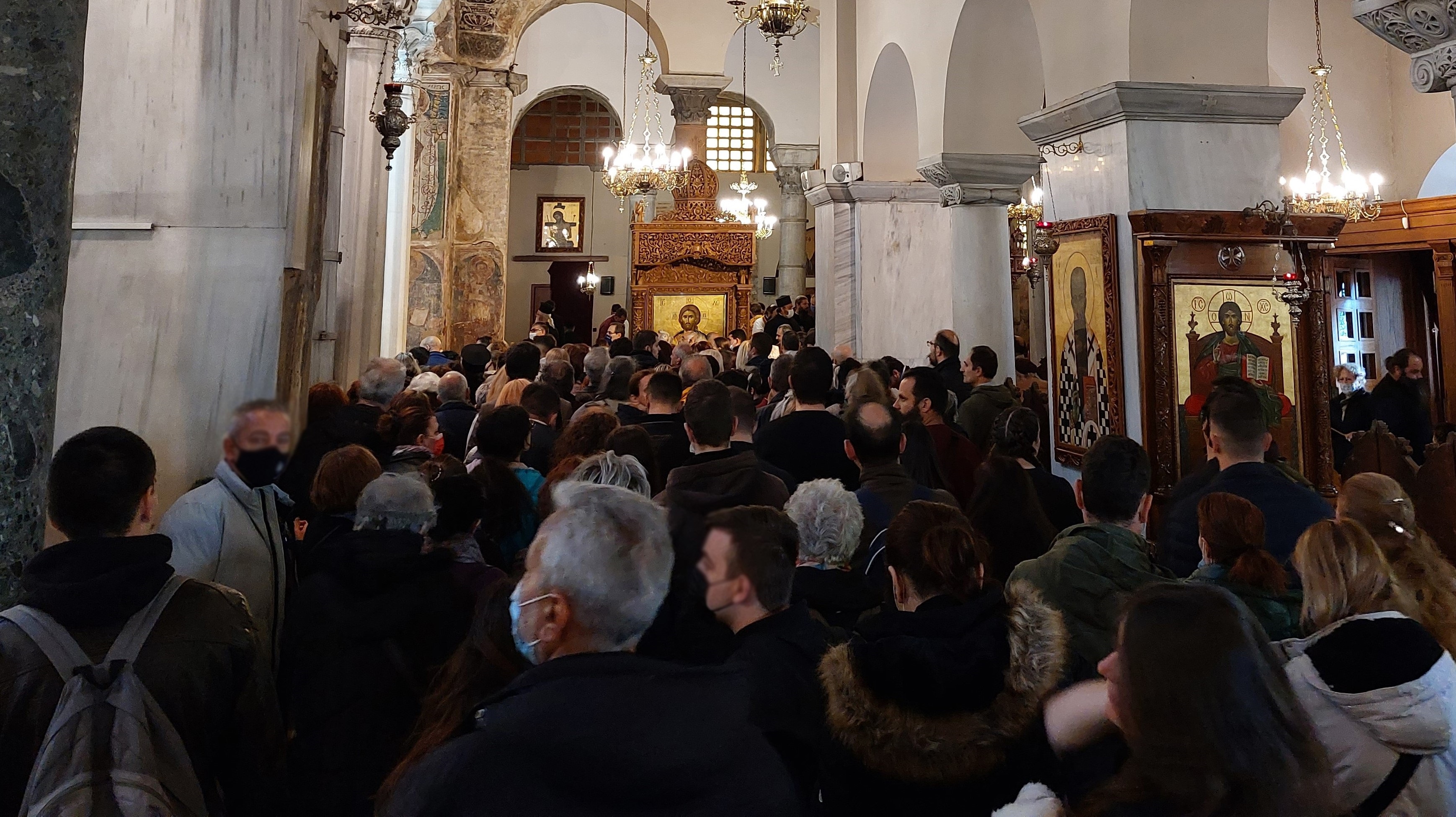 Αρκετοί εξ αυτών -ακόμα και ιερείς- δεν φορούσαν μάσκες ούτε στο εσωτερικό του ναού, ενώ οι περισσότεροι από όσους φορούσαν, τις κατέβαζαν κατά την προσκύνηση των εικόνων.