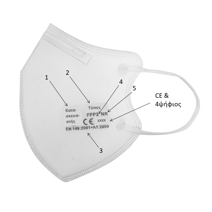 Β. Η σήμανση CE συνοδεύεται από έναν τετραψήφιο αριθμό, που προσδιορίζει τον οργανισμό πιστοποίησης της μάσκας (κοινοποιημένος οργανισμός, Notified Body - NB). O κοινοποιημένος οργανισμός διενεργεί τη διαδικασία αξιολόγησης της συμμόρφωσης της μάσκας. Οι οργανισμοί κοινοποίησης με έγκυρη κοινοποίηση για ΜΑΠ φαίνονται στην ακόλουθη ιστοσελίδα της Ε.Ε: https://ec.europa.eu/growth/tools-databases/nando/index.cfm?fuseaction=directive.notifiedbody&dir_id=155501.