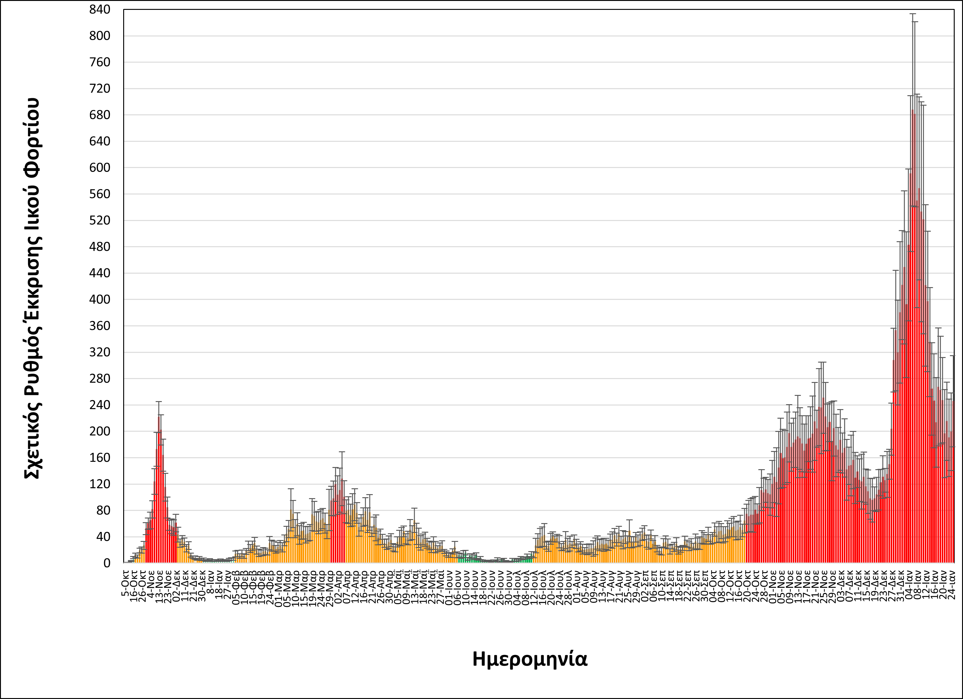 Όπως φαίνεται στα διαγράμματα που παρουσιάζει το ΑΠΕ-ΜΠΕ (επισυνάπτονται) από τα μέσα Ιανουαρίου και μετά παρατηρούνται διακυμάνσεις μεταξύ των καθημερινών μετρήσεων γύρω από ένα υψηλό επίπεδο.