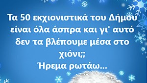 Δεν μπορούμε παρά να μην δώσουμε συγχαρητήρια σε νοικάρισσα αιρετού με υψηλότατο βαθμό στον Δήμο μας , η οποία την ώρα που ο Δήμαρχος και ο αντιδήμαρχος δεν φαίνονταν πουθενά βγήκε με στοιχεία και τεκμηριωμένα η γυναίκα να ενημερώσει τους συνδημότες της πόσα από τα 50-60 οχήματα χάλασαν από την πρώτη μέρα , πόσοι χειριστές είχαν αρρωστήσει και πόσες αλατιέρες κόλλησαν, σε σπίτι αιρετού μένει αν δεν ξέρει αυτή ποιος θα μπορούσε να ξέρει καλλίτερα.