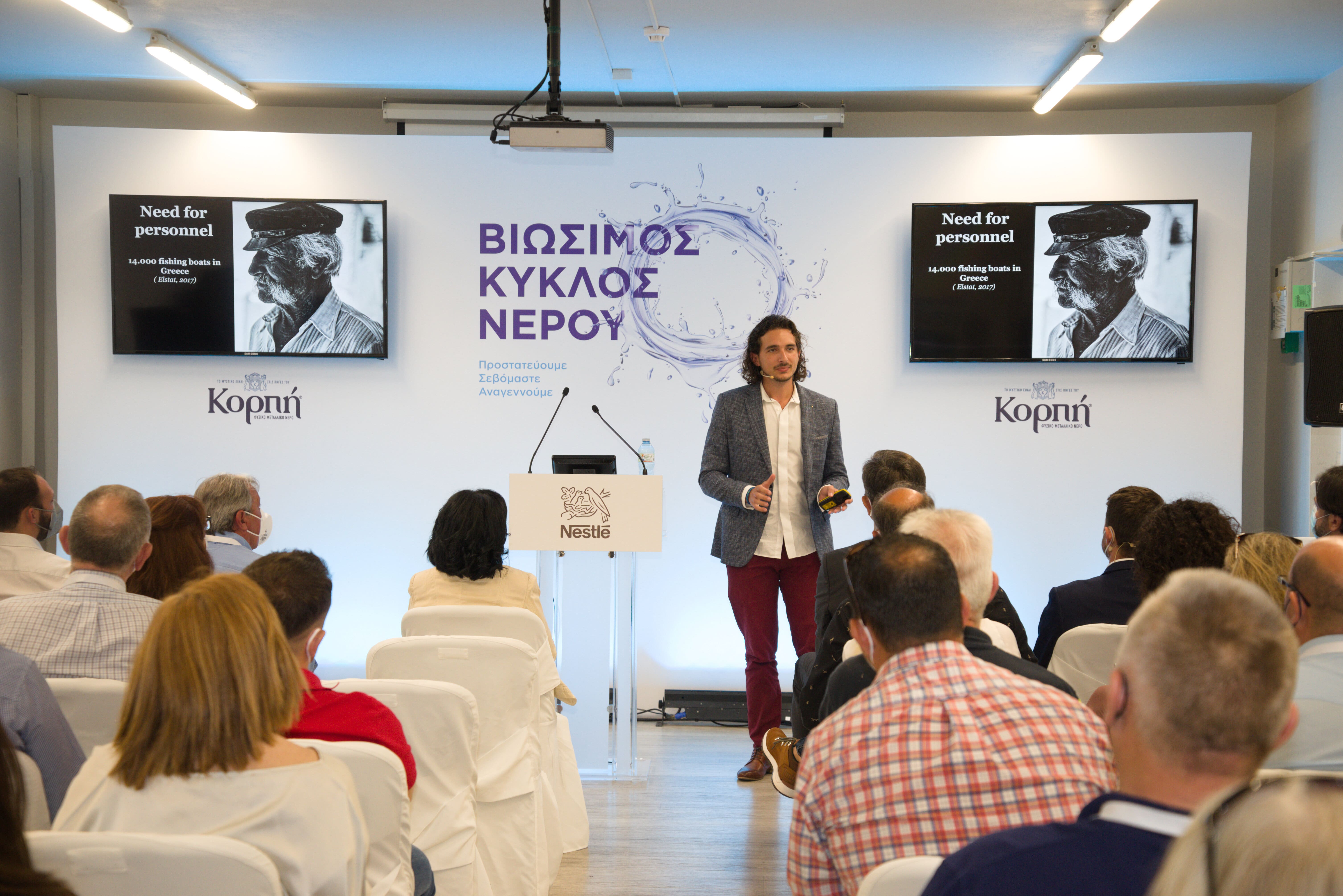 Ο Διευθυντής του εργοστασίου ΚΟΡΠΗ, Νίκος Θαλασσινός, παρουσίασε τις βιώσιμες πρακτικές που εφαρμόζονται στο εργοστάσιο για την ορθή διαχείριση των υδάτινων πόρων και την αποφυγή απωλειών και σπατάλης νερού. Όπως επεσήμανε: «Στοχεύουμε στην αναγέννηση του κύκλου του νερού, δηλαδή στην επιστροφή στη φύση των ποσοτήτων νερού που απαιτεί το εργοστάσιο σε ετήσια βάση, με στόχο το 2025 να έχουμε πετύχει θετικό ισοζύγιο. Αυτό σημαίνει πρακτικά να επιστρέφουμε στη φύση μέσα από τις δράσεις μας, που πραγματοποιούμε σε συνεργασία με την τοπική αυτοδιοίκηση, περισσότερο νερό από όσο αντλούμε ετησίως». Αυτή η δράση αποτελεί και μέρος της διεθνούς πιστοποίησης Alliance for Water Stewardship (AWS) που διαθέτει το εργοστάσιο ΚΟΡΠΗ, το 1o από όλα τα εργοστάσια νερού στην Ελλάδα και από τα πρώτα της Nestlé παγκοσμίως που έλαβε αυτή την πιστοποίηση.