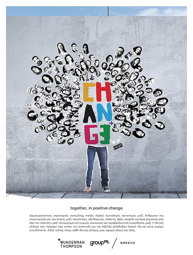 Μία νέα εποχή θετικής αλλαγής, με κεντρικό μήνυμα Together In Positive Change, ξεκινάει για την Wunderman Thompson & GroupΜ Greece, ως ένα ενιαίο σχήμα της WPP με διεθνή τεχνογνωσία αιχμής, κοινό τρόπο σκέψης και νέα agenda συνεργασίας για τις εταιρείες Wunderman Thompson, Tribe, Grey, MediaCom, Mindshare, MSix και MovieLab.