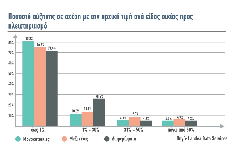 Στο παρακάτω γράφημα μπορείτε να δείτε το ποσοστό αύξησης τιμής ανά κατηγορία ακινήτου.