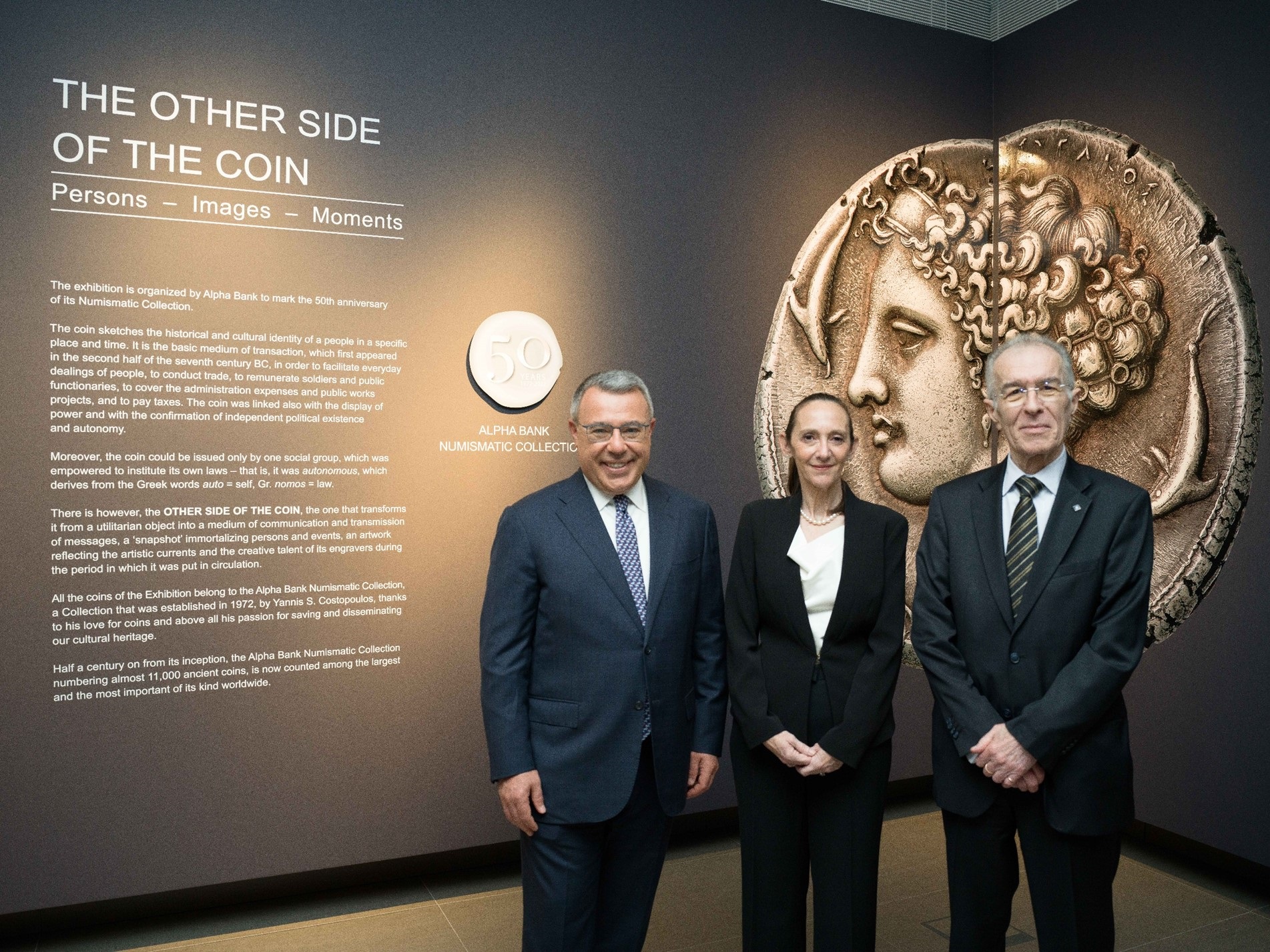 Πλήθος προσωπικοτήτων από τον χώρο του πολιτισμού, της τέχνης, της οικονομίας και της πολιτικής, Πελάτες και Στελέχη της Τράπεζας παρευρέθηκαν στην εκδήλωση εγκαινίων της Έκθεσης για τα 50 χρόνια της Νομισματικής Συλλογής της Alpha Bank, με τίτλο «Η ΑΛΛΗ ΟΨΗ ΤΟΥ ΝΟΜΙΣΜΑΤΟΣ».