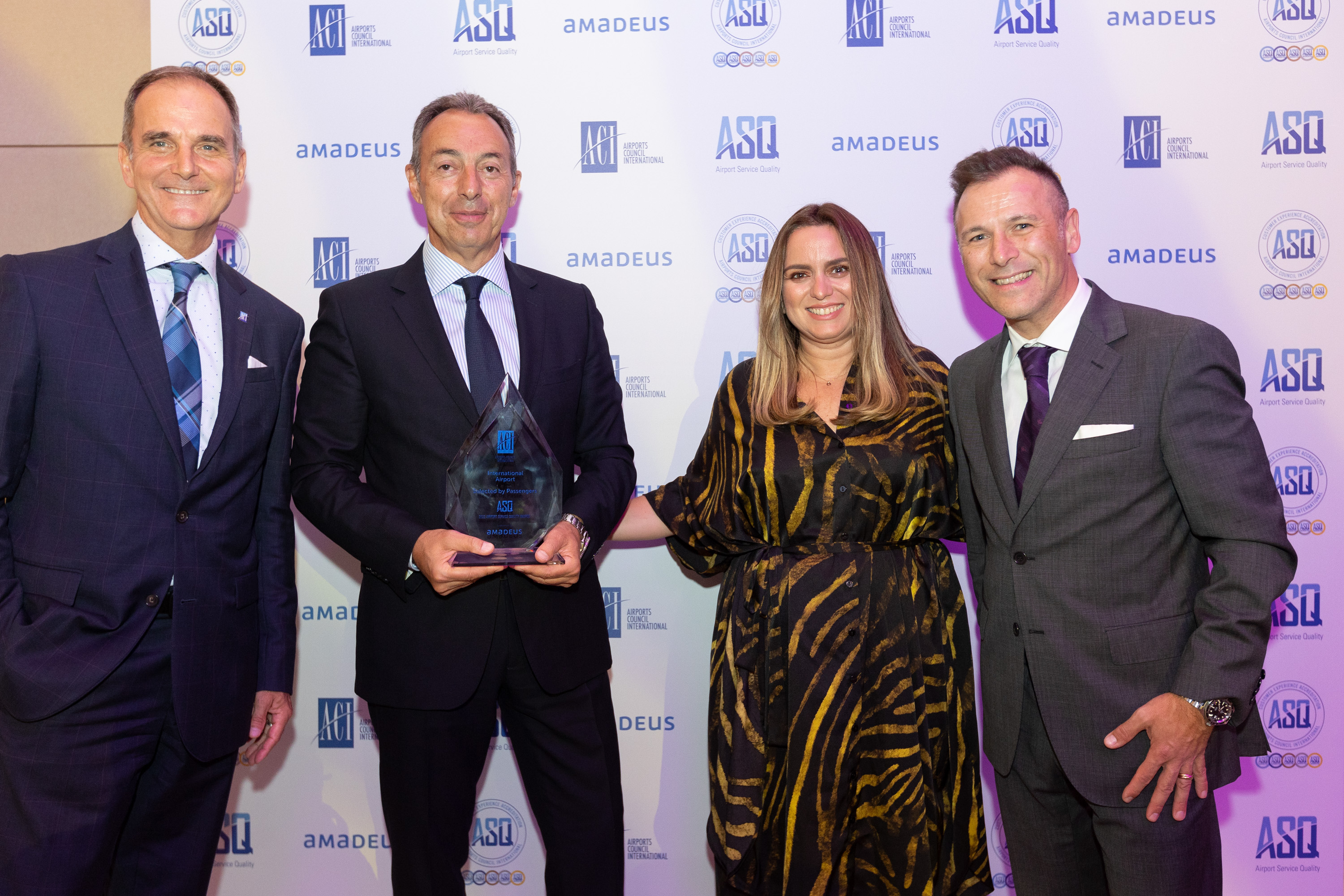 Από αριστερά προς δεξιά: κ. Antoine Rostworowski ACI World, κ. Παναγιώτης Σπυράτος, Γενικός Διευθυντής Επιχειρησιακών Λειτουργιών (COO), Fraport Greece, κα Μαρία Ζερβούδη, Airport Services & Customer Experience Manager, Fraport Greece, κ. Dimitri Coll, ACI World.
