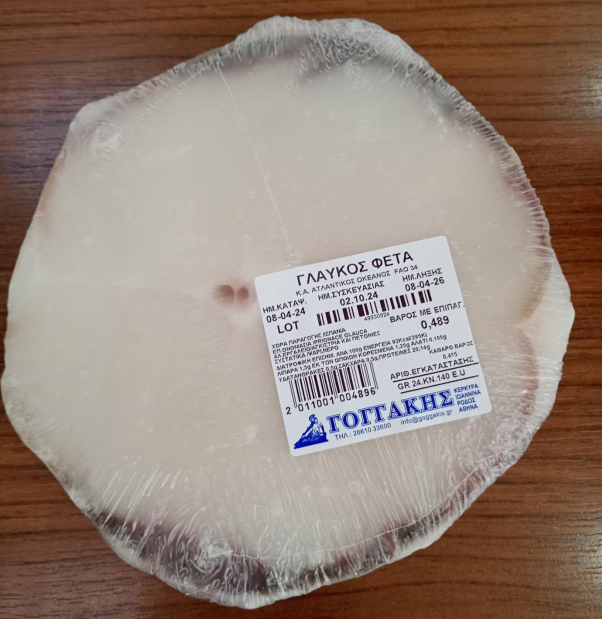 Ο ΕΦΕΤ και συγκεκριμένα η Περιφερειακή Διεύθυνση Ηπείρου, κατά τη διενέργεια ελέγχων στο πλαίσιο του Προγράμματος «Επίσημος έλεγχος για την παρακολούθηση χημικών παραμέτρων Ασφάλειας Τροφίμων- Έλεγχος για τον προσδιορισμό μετάλλων σε τρόφιμα» έτους 2025, προέβη σε δειγματοληψία ΓΛΑΥΚΟΣ ΦΕΤΑ ΚΑΤΕΨΥΓΜΕΝΟΣ, Κ.Α. Ατλαντικός Ωκεανός FAO 34, χώρα παραγωγής Ισπανίας, με ημερομηνία κατάψυξης 08-04-24, ημερομηνία συσκευασίας 02-10-24, ημερομηνία ανάλωσης 08-04-26 και αριθμό παρτίδας LOT 49930924 που παράγεται από την επιχείρηση ΓΟΓΓΑΚΗΣ ΑΕΒΕ.