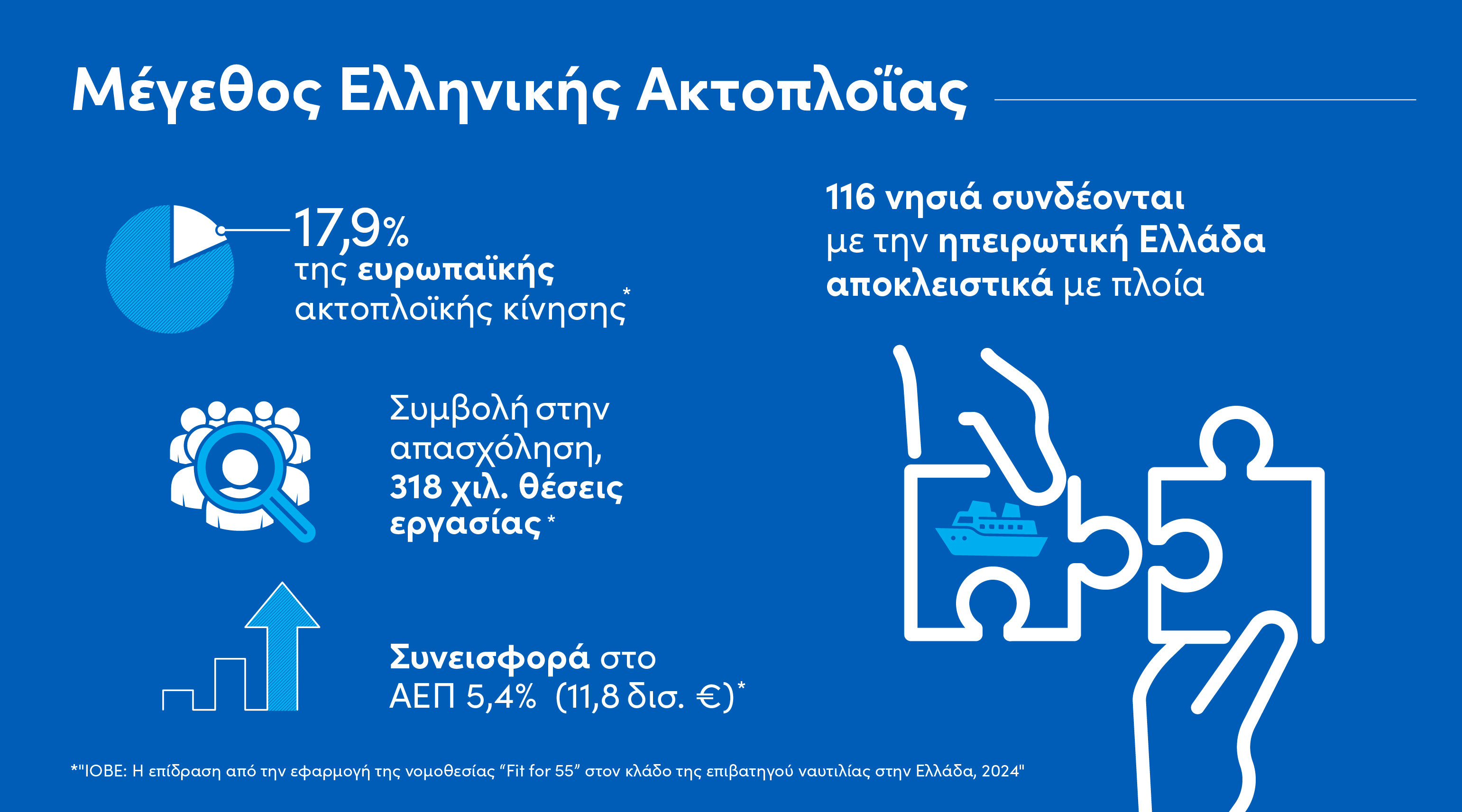 Η ελληνική ακτοπλοΐα αποτελεί μια οικονομική δύναμη που υπερβαίνει το μέγεθος της χώρας μας. Η Ελλάδα έχει μόλις το 2% του ευρωπαϊκού πληθυσμού και σχεδόν την ίδια αναλογία ως προς το ετήσιο Ακαθάριστο Προϊόν της Ευρωπαϊκής Ένωσης, όμως η επιβατηγός ναυτιλία της διαχειρίζεται περίπου το 18% της αντίστοιχης ευρωπαϊκής κίνησης.