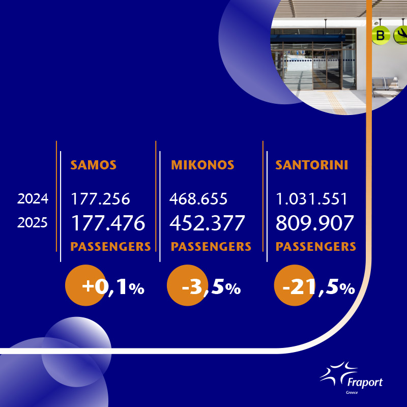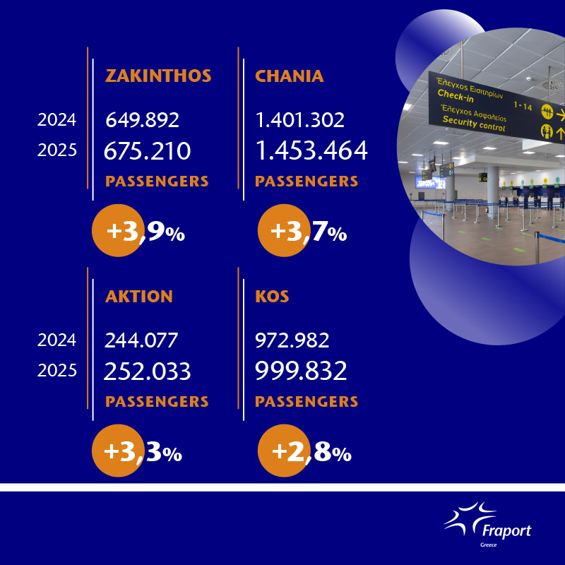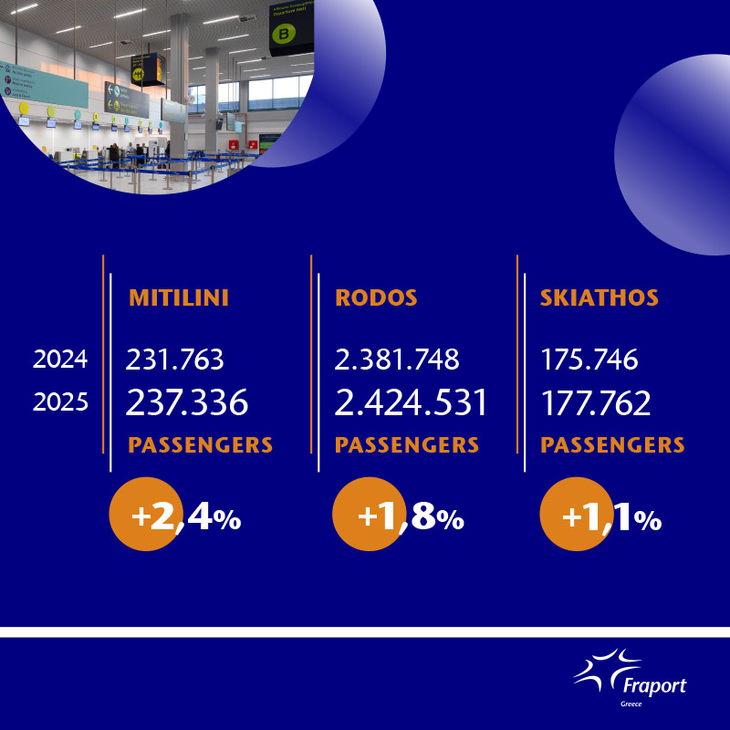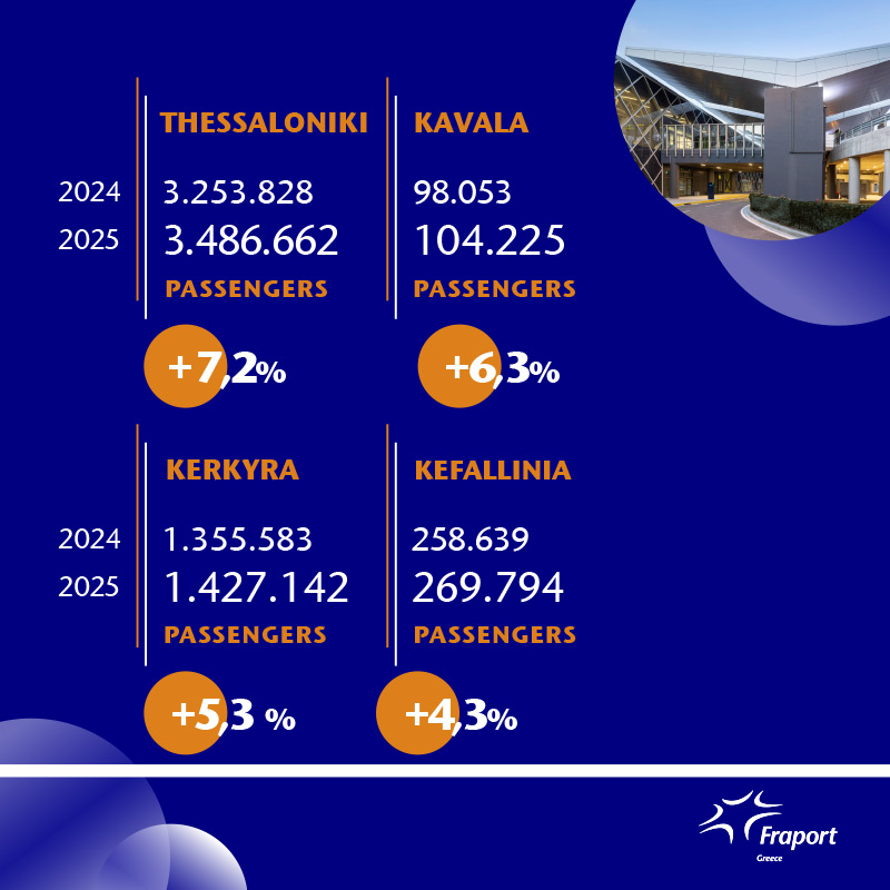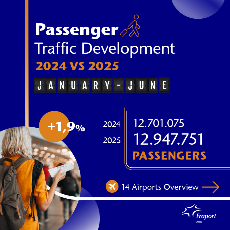Μέχρι σήμερα, τα αεροδρόμια υπό τη διαχείριση της Fraport Greece έχουν εξυπηρετήσει πάνω από 225 εκατομμύρια επιβάτες, επιβεβαιώνοντας τη σταθερή ανάκαμψη του τουρισμού και των ταξιδιωτικών ροών.