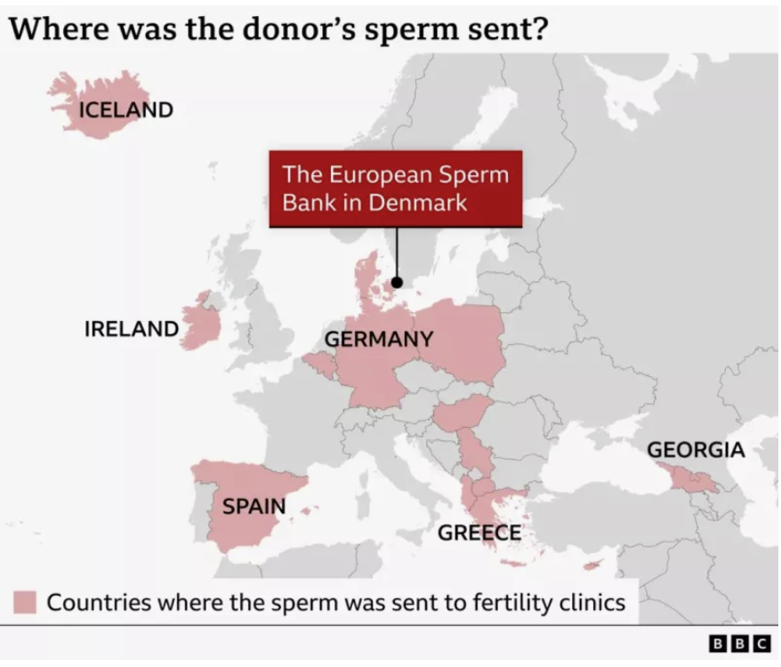 Το σπέρμα του «Δότη 7069» διακινήθηκε από την European Sperm Bank στη Δανία και χρησιμοποιήθηκε από 67 κλινικές σε 14 χώρες, μεταξύ αυτών στην Ελλάδα και την Κύπρο.