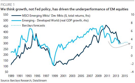 Η Barclays σημειώνει πως βρίσκει ελάχιστες ενδείξεις υπερκινητικότητας στις μετοχές των αναδυόμενων λόγω Fed, ενώ θεωρεί πως η ανάπτυξη και όχι η πολιτική της Fed ήταν ο βασικός λόγος για την υποαπόδοση των συγκεκριμένων αγορών.