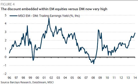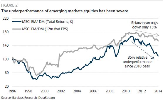 Σήμερα οι μετοχές των αναδυόμενων πιθανόν να αποτιμούν μια συρρίκνωση των κερδών και των εξαγωγών, ίσως ακόμα και του παγκόσμιου ΑΕΠ. Αυτό έρχεται σε αντίθεση με τις προβλέψεις των οικονομολόγων της Barclays για επιτάχυνση της παγκόσμιας ανάπτυξης το 2014.