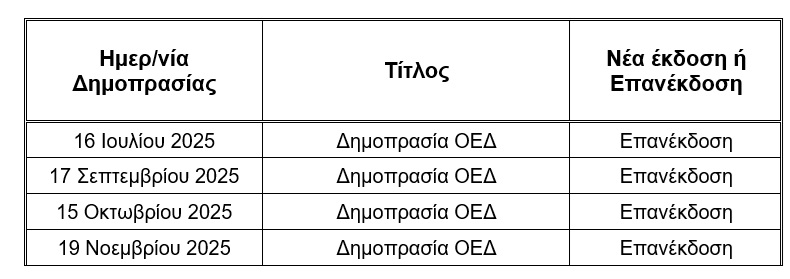 Ο ΟΔΔΗΧ θα ανακοινώνει την τελική απόφασή του αναφορικά με (i) τη διενέργεια της προγραμματισμένης δημοπρασίας (ii) το ISIN των εκδόσεων ΟΕΔ που θα δημοπρατηθούν και (iii) το ύψος των δημοπρατούμενων ποσών, μία ημέρα πριν από την ημερομηνία εκάστης δημοπρασίας, λαμβάνοντας υπόψη τη σχετική πληροφόρηση από την ομάδα των Βασικών Διαπραγματευτών Αγοράς.