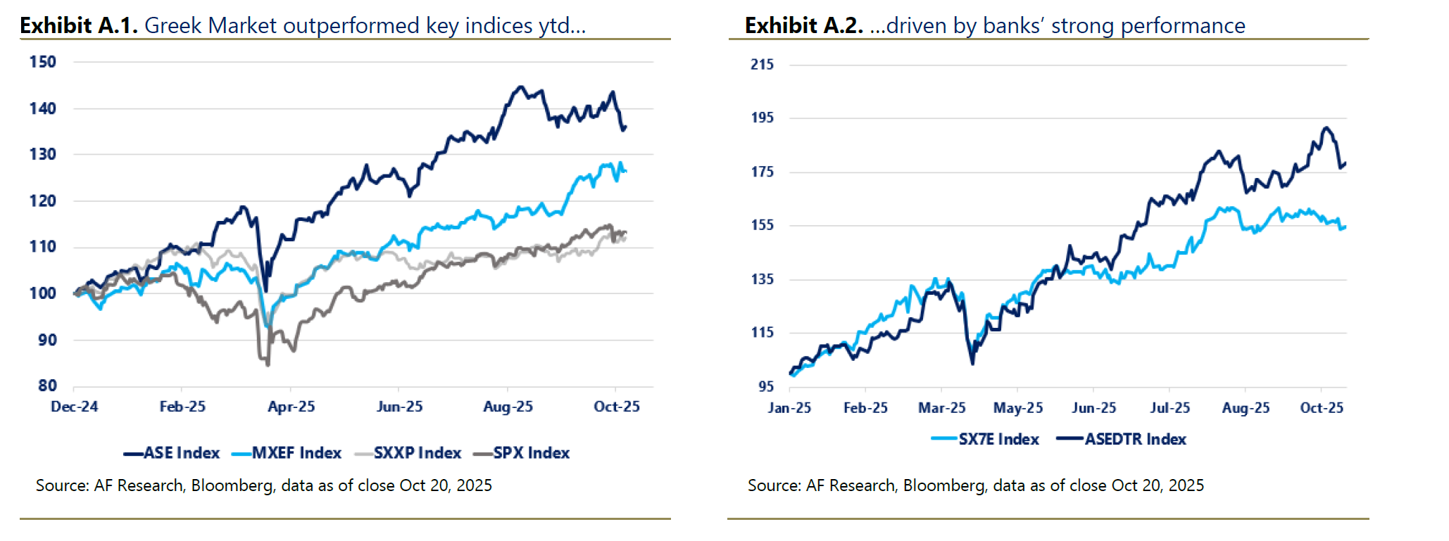 «Διατηρούμε τη θετική μας στάση για τις ελληνικές μετοχές, αναμένοντας συνέχιση της ανατιμητικής πορείας καθώς ενισχύονται οι προοπτικές κερδοφορίας και μερισματικών αποδόσεων ενόψει του 2026.