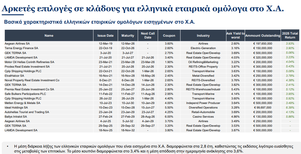Τα ελληνικά εταιρικά ομόλογα παραμένουν ελκυστικά, επισημαίνει η Alpha Bank σε σχετική έκθεσή της.