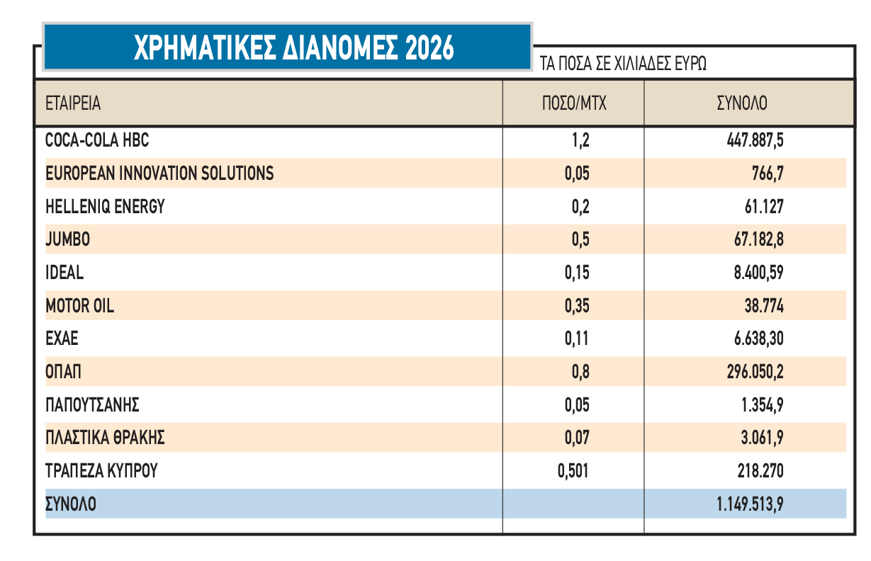 | ► Αυξάνονται τα μερίσματα φέτος έναντι των 5,9 δισ. ευρώ του 2024 — ήδη έχουν ανακοινωθεί διανομές 1,15 δισ. ευρώ, με τις τράπεζες και ΔΕΗ να επικαιροποιούν business plans εντός διμήνου |