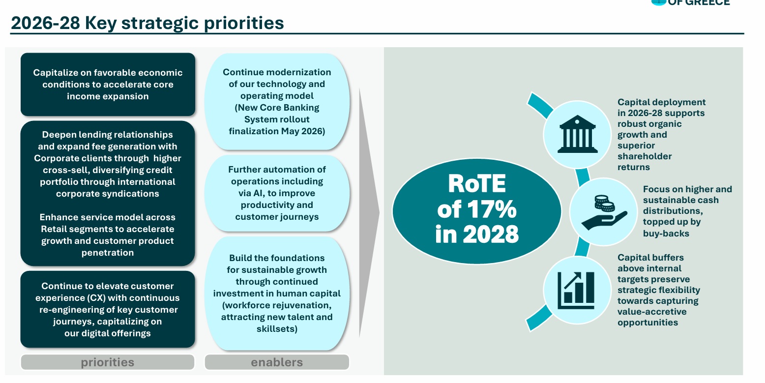 Αν επιτρεπόταν ο χαρακτηρισμός «καυτό σημείο» στην οικονομική ορολογία, η σελίδα 18 της παρουσίασης Εθνικής Τράπεζας για τα αποτελέσματα Δ΄ τριμήνου 2025 και τους βασικούς άξονες του επιχειρηματικού σχεδίου τριετίας 2026-28, θα τον διεκδικούσε επάξια.